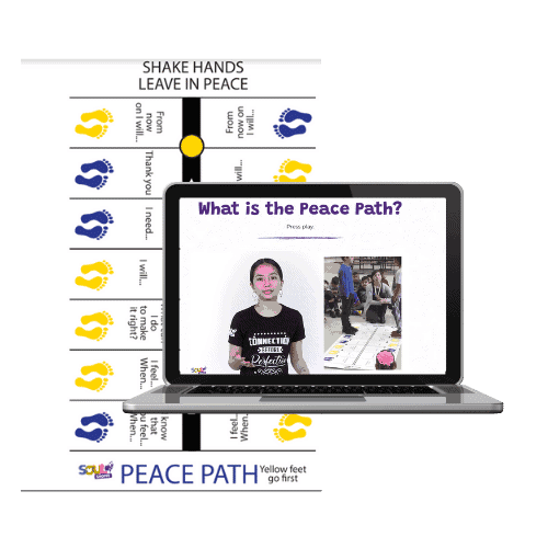 Students of all ages need to learn how to better feel and comprehend their emotions as well as demonstrate empathy for others. This is especially true in cases of situational conflict. The Soul Shoppe’s Peace Path® helps students resolve problems and conflicts by using SEL skills and strategies to work out their problems. The (literal) path to peace gives visual cues for a seven-step restorative process that students move through for peace. Each person gets to talk about how they feel, say what they need, listen and be heard, take responsibility for their part, and finally, offer forgiveness and be forgiven. This peer-based conflict resolution model, which combines social and emotional skills with practical action steps, has been taught to and, more importantly, used by tens of thousands of students through this portable tool. One of the unique aspects of Soul Shoppe’s Peace Path® is that, through time, the skills become a way of being, making this model of peaceful resolution and empathic mindfulness a foundation that lasts a lifetime. Soul Shoppe’s Peace Path® was recognized by the Dalai Lama, spiritual leader of Tibet, as a model for encouraging students to become peacemakers by using their emotional skills to navigate difficult social situations. The companion video tutorial and guidebook are included to teach how to use the Soul Shoppe Peace Path® with step-by-step instructions as well as best practices for using it most effectively. Additionally, the tutorial shares the science used in creating the Soul Shoppe Peace Path®, and can be purchased separately as needed.